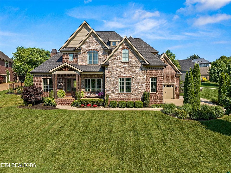 Impressive brick and stone house in a park setting of The Farm at Willow Creek Subdivision in Farragut. This spectacular Stephen Davis design house has it all: Stateful curb appeal on a corner lot with stone and brick front porch and double front doors. The main floor welcomes you with an open floor plan, 10 and 12-foot ceilings, 8ft tall doors, and a wall of glass on the back bringing lots of natural light. Kitchen is open to the living room and breakfast area with a work island, lots of countertop space, and a dry bar.
