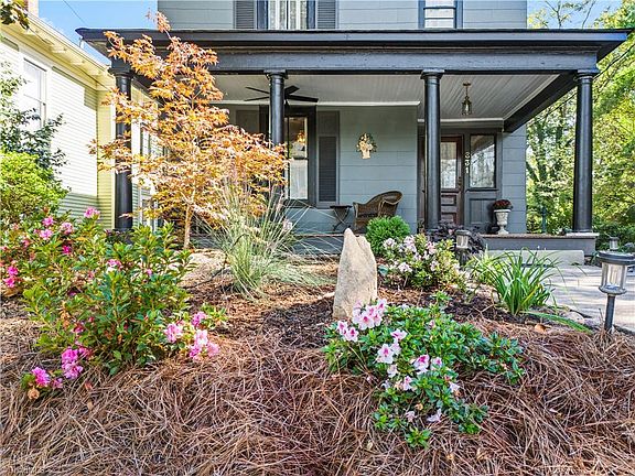 Looking for charm and easy living in a walkable downtown neighborhood…here it is! This Lovely 3 bedroom home sits prominantly on a premiere street in the West End Historic neighborhood. Known as the Adams-Hines House ca.1911, it has beautiful street side landscaping, and the perfect front porch for relaxing. New roof, new HVAC, and rebuilt front porch. Fresh paint inside and out. This one is a gem! Walking distance to at least 5 restaurants, a coffee house, a brewery, the YMCA, and Hanes Park! Hardwood floors with turn of the century trim work and doors. Currently the home has been used as a furnished rental. There is tons of potential in the basement area! Current owner has HRC approval for rebuilding the deck on side of home if buyer choses to do so. (Rooms with low ceilings in converted porch area not counted in square footage). Driveway is shared.