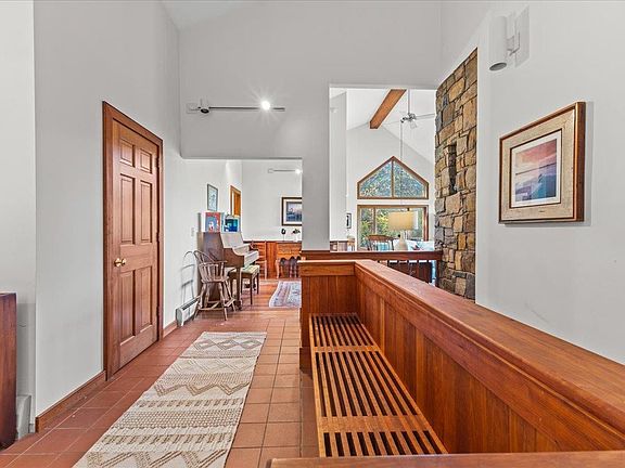 Nestled in one of Stowe's most sought-after neighborhoods, this charming residence perfectly balances comfort and thoughtful design. Every room in this spacious home offers breathtaking views of Mt. Mansfield, providing a daily panorama of natural beauty. The open floor plan features 4 bedrooms, including a primary suite with uninterrupted views of Stowe Mountain Resort, an en suite bath, and ample closet space. At the heart of the home is a generous living area, highlighted by large windows that capture stunning sunsets. The kitchen, designed with culinary enthusiasts in mind, offers ample space for dining, while a private office caters to remote work needs. The lower level includes an additional living room. The home offers ample guest accommodations with additional spacious bedrooms, all with ski slope views. With a detached garage, well-designed mudroom and the potential for one-level living, this home combines practicality and charm, making it ideal for those seeking convenience and natural beauty. Set on an expansive 11.9-acre property, it promises endless outdoor adventures, with nearby trails and Stowe Land Trust preserves just a short walk away. After a day of exploring, retreat to the warmth of the home, whether by the fire or relaxing on the sofa, enjoying the magnificent views. Recent upgrades include a new boiler, hot water heater, and updated electrical systems, ensuring modern comfort and reliability.