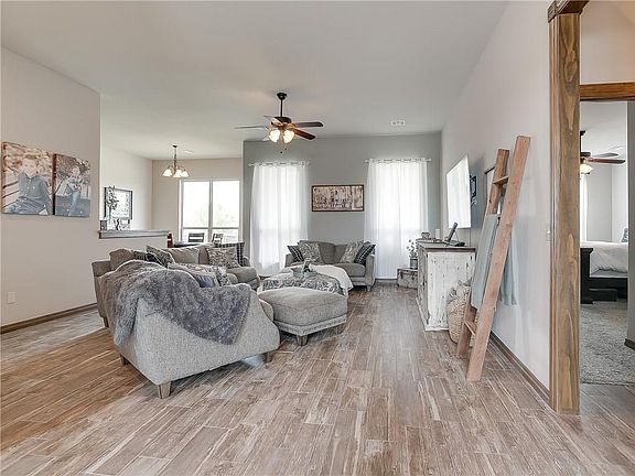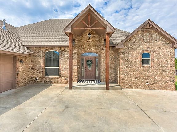 WELCOME TO YOUR NEW HOME! Conveniently located in the heart of Blanchard and just off of Hwy 62, this home is in a prime location. Boasting freshly stained porch columns, and fresh paint throughout the home. The layout is truly inviting with 3 bedrooms, 2 bathrooms and a study/spare room. The master suite is stunning with large windows, along with high ceilings, making the room feel even more spacious. Off of the master suite is a large master bathroom, with a walk-in closet, including built in shelves and storage. Wood-look tile throughout the home makes maintaince easy! Freshly cleaned carpet in all bedrooms solidifies the upkeep of the home. Love fireworks? You have a front row seat to the annual fireworks show in town, right off of your back porch! Lined with sidewalks throughout, this neighborhood is great for Sunday strolls.