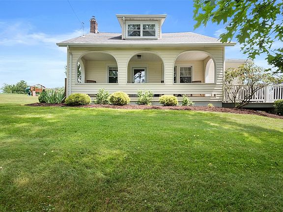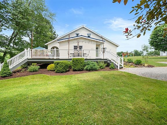 Located on a peaceful two acres this charming four-bedroom Cape Cod offers the best of both worlds: a quiet retreat on serene land with close proximity to town and shopping! The design incorporates convenient updates while maintaining the original character of this 1920's home. The first floor boasts a large eat in kitchen, cozy living space with wood burning fireplace, two bedrooms and a full bath with original hardwood floors throughout. Upstairs you'll find two more bedrooms along with another full bath and additional storage. The outdoor oasis offers a wrap around deck that overlooks the expansive yard with storage shed, raised garden and grape vines.