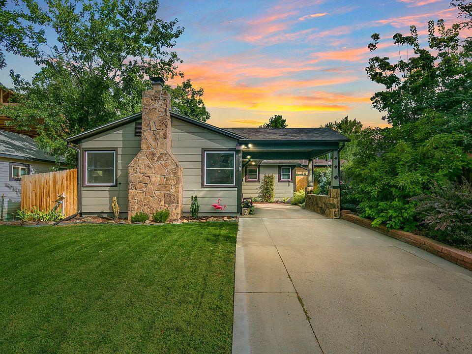Welcome to this downtown Loveland charmer. Walking distance to local breweries, shops, and restaurants! Take a stroll to the nearby River's Edge Natural Area. The beautiful backyard is perfect for entertaining and has been impeccably maintained by its current owners. This home has been recently renovated bringing a touch of modern charm, from the new kitchen with quartz counters, stainless steel appliances, and tile. The open concept kitchen and living room make it easy for entertaining. Sit back and enjoy the fireplace on a cold winter night. The modern touches follow into the rest of the home including the updated bathrooms. The gorgeous hardwood floors flow throughout the home as well as newer interior and exterior paint. The roof is only a few years old, and the plumbing and electrical have all been updated. With a detached pull-through garage with alley access and even a covered entrance out front with an additional covered parking stall, this home is not missing any details.