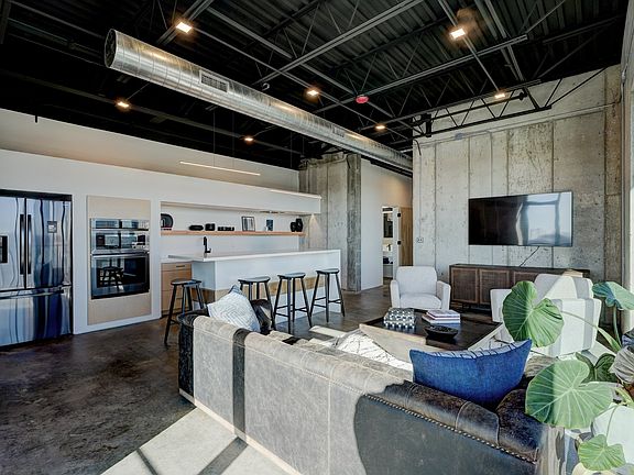 Live in luxury at 631 W California Ave, a modern fully furnished 2-bedroom, 2-bath loft located in the heart of Oklahoma City's vibrant Arts District, right in the sought-after Film Row neighborhood. This beautifully designed unit features polished concrete floors, floor-to-ceiling glass walls, and a sleek open-concept layout that seamlessly blends comfort and sophistication. The gourmet kitchen comes fully equipped with high-end Samsung appliances, custom cabinetry, and a spacious islandperfect for cooking and entertaining. Unwind in the spa-inspired primary bath with a soaking tub, oversized walk-in shower, and double vanity. Enjoy stunning city views from your private balcony, or take advantage of the exclusive 2,200 sq ft rooftop terrace offering panoramic views of downtown OKC. The unit is fully outfitted with smart home technology, including automated shades, climate control, and a virtual entry system. All utilities, including Wi-Fi, are included, and a reserved enclosed garage parking spot comes with the unit. Located just steps from the OKC Museum of Art, Civic Center, Myriad Gardens, and top restaurants and nightlife, this is downtown living at its finest.