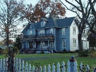 Story book mini mansion with picturesque setting, on nearly 1 acre lot, right in the middle of the city! Grand rooms with tall ceilings on both levels. Formal parlor w/ fireplace, library w/ original, built in bookshelves, hickory floors thru out main level and hardwoods in all bedrooms. Main floor bedroom and full bath. Some large walk in closets. TONS OF CHARACTER. Front and back stairs. Full, walk up basement and attic for storage. Back yard is fenced. Stunning piece of Olathe history.