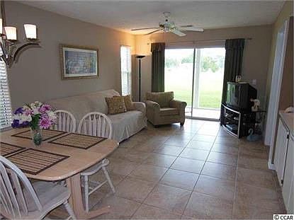 This fully-furnished 2BD/2BA 1st floor end unit offers a golf course view. Tile floors throughout, incl the screened porch, for low maintenance. This very-well maintained gated community boasts indoor pool, outdoor pool along the waterway, and tennis courts. Villa features open floor plan. New water heater and microwave. Newer range/oven and fridge. All appliances, furniture, dishes and paintings will convey. Some personal tabletop decorative items will not convey. Low HOA incl property insurance, water/sewer, basic cable + internet, trash and all the amenities. Wonderful location in Carolina Forest school district (new River Oaks elementary).