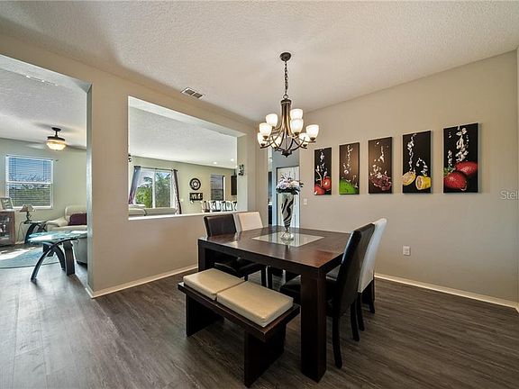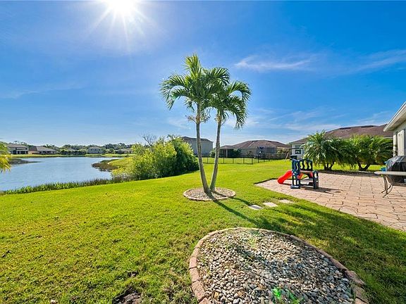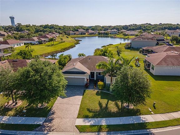 This bright & beautiful pond view home will be your happy place!! Nestled on a lovely landscaped lot, the entire property exudes character from its custom painted driveway to the inviting front patio. The interiors exceed all expectations in a contemporary open concept layout where you can put your chef skills to the test in the fabulous kitchen outfitted with extended cabinets, tiled backsplash, stainless appliances, pantry, breakfast bar & corian countertops. Entertain in the formal dining room, or take the celebration outdoors to the large private patio. Built in 2012, this well maintained 3 bed, 2 bath is a showplace, with sumptuous accommodations that includes a spacious master with pond views & ensuite with dual sinks, tiled shower, ceramic wood plank tiled floors & walk-in closet. This Sheffield Glen home is a fixture of Florida charm close to the golf course, parks, schools, shopping & dining, as well as I75 & 275 for easy commuting to St Pete or Tampa. All this plus low HOA fees & no CDD fees!