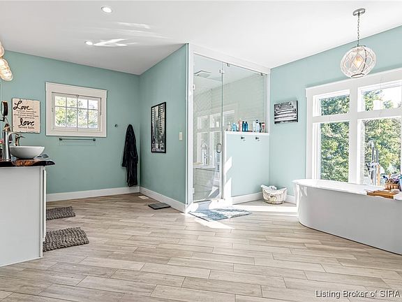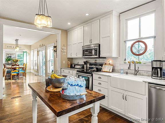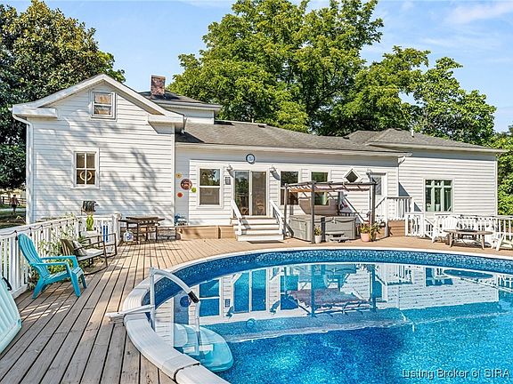 A rare opportunity minutes from River Ridge/East End Bridge. An historic farmhouse on 15 acres was recently renovated and expanded with a primary suite addition, a substantial deck and pool, and an impressive sports court. Built in the 1880s, the original farmhouse features goodies such as divided light windows, covered front porch and a handsome entry. Eastlake cast iron fireplaces and pocket doors grace the living rooms. Featuring a wall of windows overlooking the pool, the 22’ dining area doubles as a great room and is the center of activity. It features a multi-purpose breakfast bar that seats 5 for dining, crafting, schooling or serving a buffet. It connects to a charming kitchen with wood floor, farm sink, bead board accents, marble counters and gorgeous original wavy glass windows. Step into the oversized laundry room with doggy bath or into a private office in the middle of the house! Upstairs are 3 sizeable bedrooms that easily share a big bath. Nothing old-fashioned about this primary suite! The luxury bath has 7’x7’ tile shower, live edge vanities, custom closet and a soaker tub with a view! It’s over 750 sf plus a private screened porch. A thoroughly modern family room with fireplace, a full bath and a true 5th bedroom complete the walk out basement. The 6 acre homesite has 4 historic barns, a spring house, pool and multi sports court plus 9 acres of woods, 3 creeks and moto-trails. Spectrum Internet! Book a private tour today and stay for a walk in the woods!
