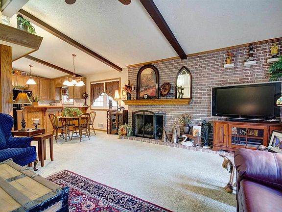 This warm inviting home is truly turn key ready located in a great neighborhood. The living/dining room features a vaulted ceiling with beams and all brick wall with fireplace. The bath has a large walk-in shower and a wonderful Jacuzzi tub to relax in after a hard day. This home has been updated with newer highly energy efficient windows, french door slider, and some siding. Extra insulation was added to the roof before shingles and it has gutter covers. There is a 12x13 storage building attached to the home. Hurry - this won't last long!