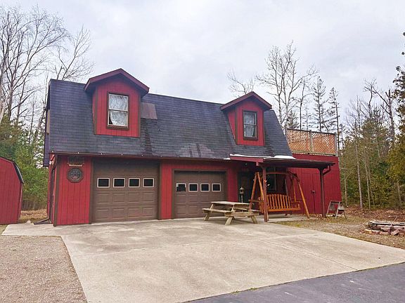 Charming 3 Bed, 1 Bath home on a private wooded double lot, with paved drive, detached 2 car garage with 3/4 bath, lean to, and living space/bedroom above. The home features a large deck, 4 season sun-room, spacious open floor plan with vaulted ceiling, perfect for entertaining guests, cozy living room/ kitchen combo with wood burning stove, 2 main floor bedrooms, full bath, laundry room and spacious upstairs loft. All of this in a prime location next door to the clubhouse, with Grand Lake, Lake Esau, Lake Huron, Presque Isle Harbor, and 2 historic lighthouses just minutes away!