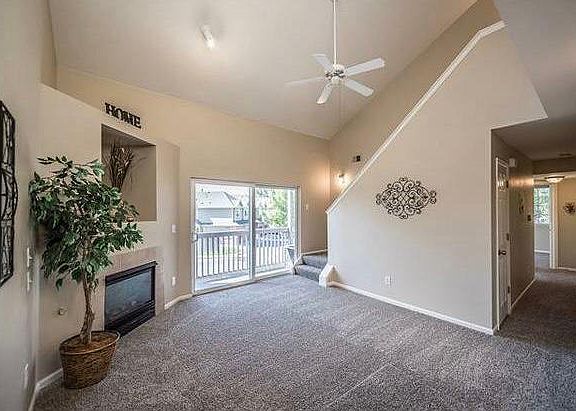Beautiful penthouse end unit condo with vaulted ceilings. This unit has a loft with huge closet. Two bedrooms, two bathrooms. Master bathroom with Jacuzzi. Remodeled kitchen with granite counter. Park/open space directly across the street and viewed from balcony. Plenty of parking. Connections for washer and dryer. Virtual showing upon request. Rent includes water, garbage and snow removal. Aditional non-refundable pet deposit of $250.