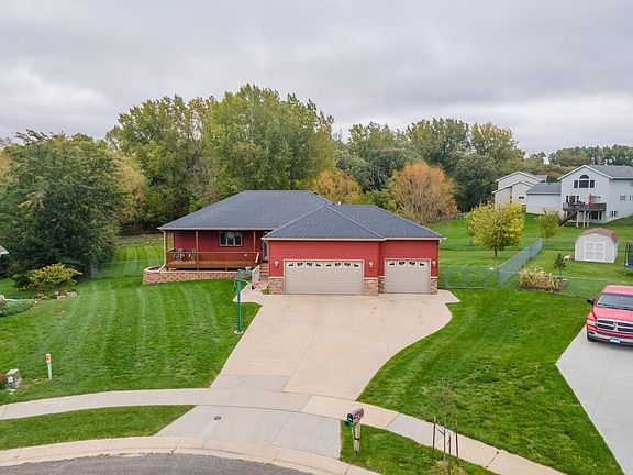 Check out this gorgeous 5 bed, 3 bath, 3 car walk-out rambler in SW Rochester! This custom 1-owner home was built in 2001 and sits on over a 1/2 acre lot. Features in this nearly 3200 SQ FT home include a huge fenced-in yard with no neighbors behind, gleaming hardwood floors, new siding, newer roof and gutters, spacious walk-in closets, main floor laundry, updated tiled bathrooms, a big family room with a gas fireplace, French doors leading to a 4-season porch on the main level with a 2nd fireplace, a large open kitchen with a breakfast bar, informal dining and quartz counter tops, new carpet and fresh paint in several rooms and much, much more! This rare find is located at the end of of a cul-de-sac near a walking path, park, shopping and has the option of Rochester or Stewartville schools! A must see to appreciate!