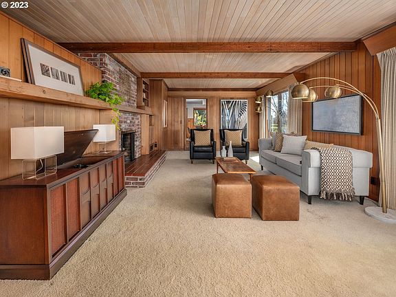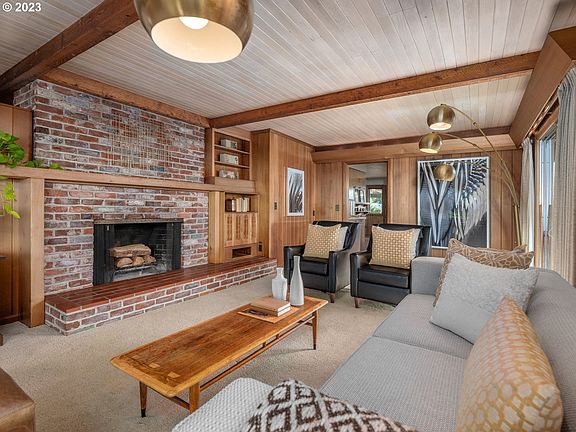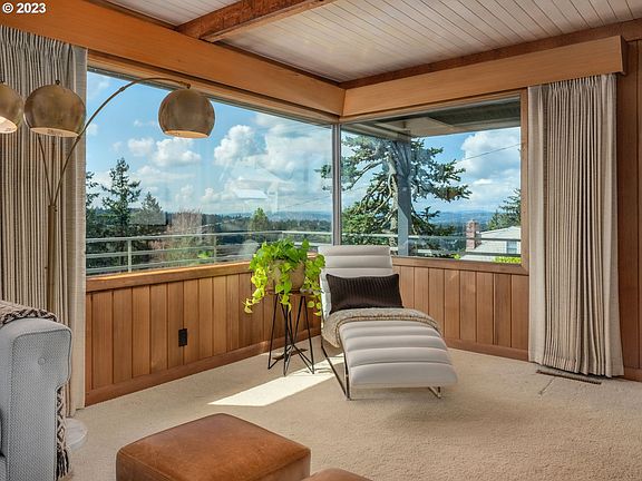 Experience Mid-Century style and sophistication with this incredible and one-of-a-kind home, now on the market for the first time from the original owner/builder. This rare and unique property is situated on a private .25-acre lot, boasting a breathtaking garden and magnificent territorial views.Inside, the main living space showcases stunning hemlock ceilings with solid cedar beams and fir paneling throughout, large windows that provide an abundance of natural light, sophisticated indirect lighting, and a gas fireplace perfect for cozying up and enjoying sunset views.The lower level of the home features a second living quarter complete with a full kitchen and gas fireplace, providing a flexible and versatile space for guests, in-laws, ADU, or the opportunity to work from home with a separate entrance.Nestled on a quiet cul-de-sac, this remarkable property is mere blocks from Gabriel Park and Multnomah village, offering the perfect balance of seclusion and convenience. Don't miss your chance to own this incredible property bursting with potential. [Home Energy Score = 5. HES Report at https://rpt.greenbuildingregistry.com/hes/OR10213925]