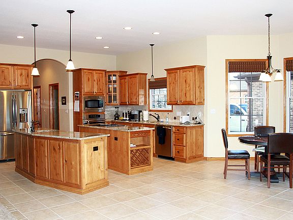 Over .5 Acre Lot, this gorgeous Custom Ranch w/Open Floor Plan is turnkey*All Brick/Stone Maintenance Free Exterior*Huge Great Room w/Formal Dining or Sitting Area w/Fireplace*The Gourmet Eat-In Kitchen boasts 2 Islands*Granite & Custom Tile Inlays throughout*Master has a Luxury 5-Piece Bath w/Walk-In Shower & Rain Shower Head. Large Patio w/add'l access off Master *Yard backs to Open Space*Add'l Detached 2-car Garage/Workshop*Dog Kennel*Prewired Cat 5*Sec System*Surround Sound*Heat Pump, Etc.
