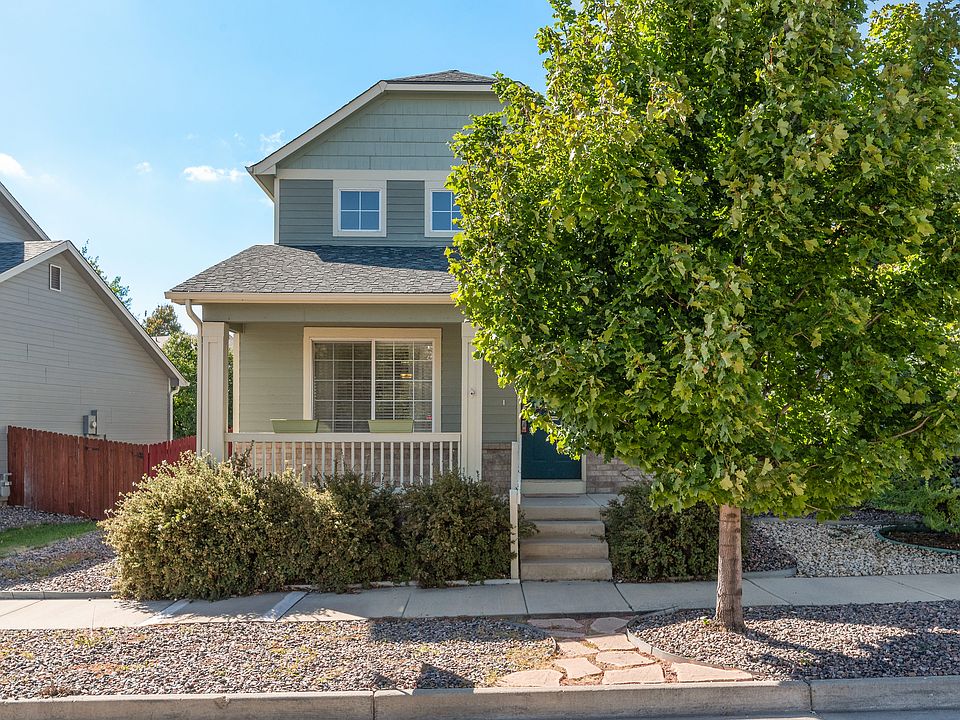 Welcome to the Loft house! Your perfectly sized and perfectly located cozy next home. It's bright and airy with sky high ceilings and an open loft area that can be used in so many ways. As you approach the warm and welcoming COVERED FRONT PORCH you'll see that it's an excellent place to have your morning coffee and watch the sunrise. From the front door, you can see all the way through to the back patio allowing so much light and making the space feel airy. The entire open concept main level has BRAND NEW LUXURY VINYL TILES which are waterproof, scratch proof, extremely durable and just beautiful. You'll never have to worry about them. The upper level has BRAND NEW CARPET, 2 generously sized bedrooms and closets with a wonderful closet system. The Loft House also has newer paint, newer windows, newer fixtures and lighting. The roof was recently replaced (2018) and has high impact shingles. The kitchen has a cozy breakfast bar and newer Refrigerator, Dishwasher and low profile microwave. The sunny patio has 2 concrete pads and synthetic turf on the side of the house, perfect for pets as you can just rinse the area clean. It's close to everything! All the amenities of the Powers Corridor is walking distance as well as, Parks, Starbucks, Costco and tons of shopping. The new Penrose St. Francis Hospital is 1.5 miles away and several parks and schools are within walking distance. The Loft House is MOVE IN READY!