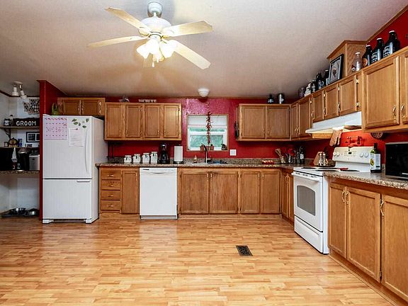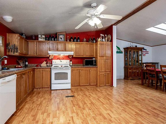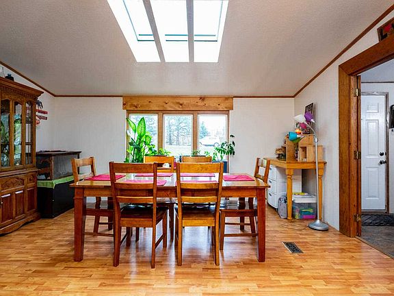 Updated home on almost an acre lot! Fenced back yard, large deck with new cover, 24x30 shop with lean to, chicken coop, timed sprinkler systems, newer roof, central air, state land behind property. Home boasts vaulted ceilings, walk in pantry, garden tub and double closets in master, pergo floors, vinyl windows, triple skylights, updated bathroom, too much to list! Kitchen appliances stay!