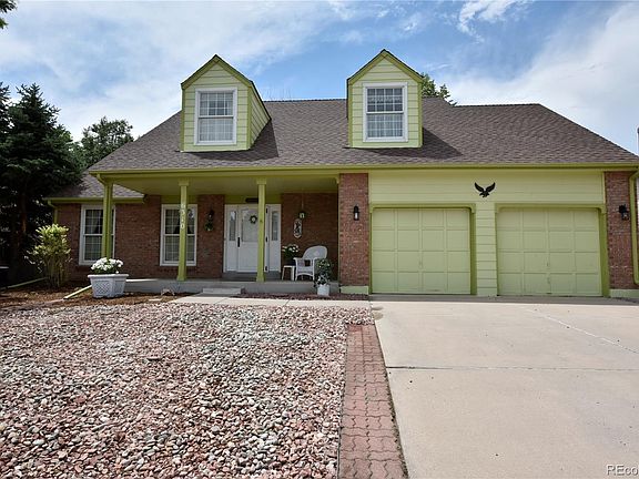 Lots of charm in this well-maintained home in School District 20. Close to shopping, grocery, schools, hiking, and 2-min drive to the I-25 on-ramp. Large covered porch to enjoy summer days. Hardwood floor entry opens to formal living room. Open concept kitchen leads to cozy family room with wood fireplace, guest bathroom, and walkout to patio and yard. Crown molding throughout main floor. Updated kitchen counters, new hardware, new faucet, new lighting, & new dishwasher. Three large bedrooms on upper level include sitting areas, and master includes a private deck. Guest suite in basement. New flooring in bathrooms. Plenty of storage and cabinets throughout. One-year home warranty included. Kitchen and yard is ready for your personal touches.