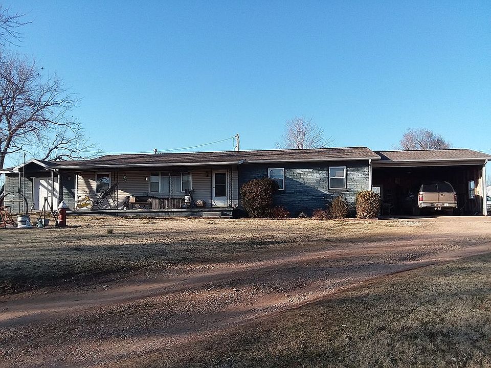 It's a Traditional, 1 story, 3 bdr, 2 full baths, living room, kitchen and an outside heat & air unit. There is sun room that was added later that has a wood stove. New windows were in stalled in 2020. There is also a back house that we rented. It is 920' sq. ft. It's 1 story with stone veneer exterior, 2 bdr, 1 bath. Everything on 15 acres.
