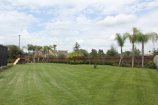 Its is our extreme honor and privilege to present, this 5 Bedroom, two master suites and 4 Bath Luxurious Executive Estate Home in the Gated Vista Lakes Community. Located on a fenced 1/2 Acre Cul-de-sac Lot and private street, this immaculately landscaped, and well-kept home boasts the highest level of comfort, design and amenities. Glass doors great you as you enter the foyer, Bamboo Flooring, tray ceilings, crown molding and custom columns are just a few of the highlights to be noted as you enter the Formal Living, and Formal dining areas, with a triple sliding door and walk-out to the covered lanai and pool deck. At the Heart of the home is large a Gourmet Kitchen featuring 42 inch wood cabinets, crown molding, island, granite counters, stainless steel appliances, walk-in pantry, butler pantry, and eat in nook with a bay window over looking the pool and bar area. Bar height counters and a built in desk add additional versatility and utility. Ample space for entertaining guests in the oversized family room, highlighted by a centerpiece Fireplace and an astonishing view of the pool deck. Enter the pool area from either 3 entrances,and you will find an extensively well crafted, resort style pool, custom built with Zero Entry Access. Self Cleaning, Solar Heated, with gas for quick heat for spa nights, and built to previous executive-owner's specific standards and boasting a fully Custom-Crafted Stone WATER feature as the focal point of the outdoor living area. Full Service grill and bar, with refrigeration, kegerator and more