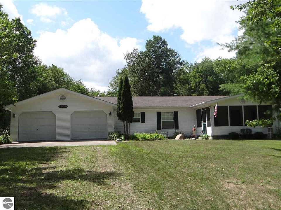 DEEDED ACCESS TO 330 ACRE PRIVATE ALL SPORTS FOREST LAKE COMES WITH THIS UP NORTH HIDDEN JEWEL ON 13.36 WOODED ACRES THAT INCLUDE BLK WALNUT, CHESTNUT, APPLE, PEAR TREES AND GRAPE VINES AND A CREEK. 3 BEDROOM, 2 BATH RANCH WITH LOTS OF STORAGE, A 10X18 SCREENED IN FRONT PORCH, AN ATTACHED 30X40 GARAGE THAT WAS CONVERTED INTO A FAMILY ROOM AND COULD BE CHANGED BACK. BUT NO NEED TO AS THERE IS ALSO A 4 CAR HEATED DETACHED GARAGE WITH A WORK SHOP. AN 8X10 OUT BUILDING FOR STORING YARD EQUIPMENT OR WOOD. WOOD BURNER REMOVED FROM HOUSE BUT WILL REMAIN AND NEW ROOF WILL BE DONE LABOR DAY.