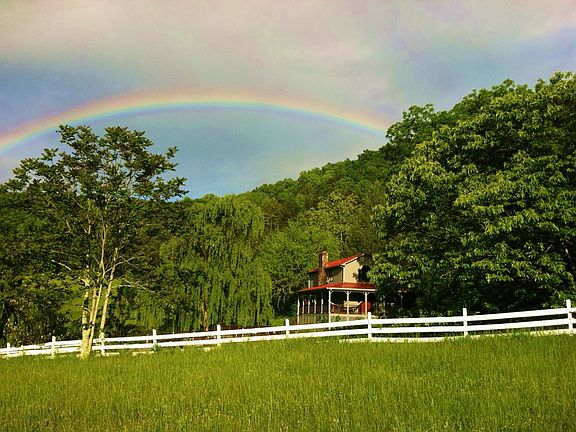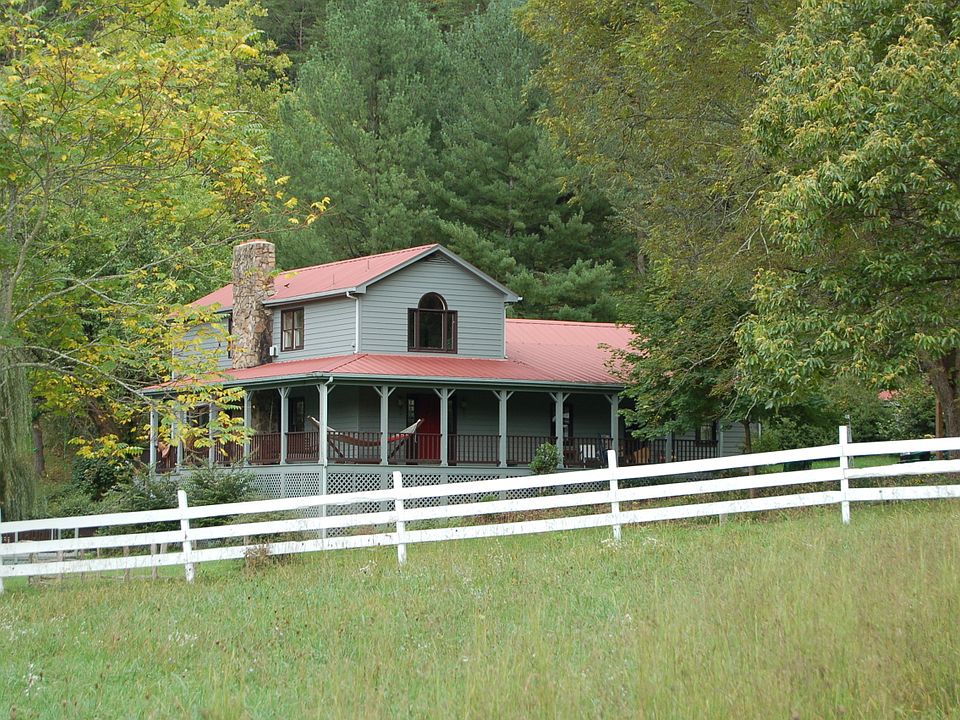 Exceptional home with privacy, stream, views, huge deck, wrap around porch, hardwood and tile floor, stone fireplace in great room, gas fireplace in master bedroom. Barn, smokehouse, garden space & charming cottage. Additional 75+/- wooded acres available for $187,500. Wooded tract adjoins US property.