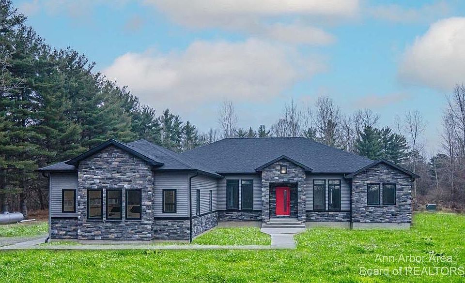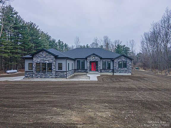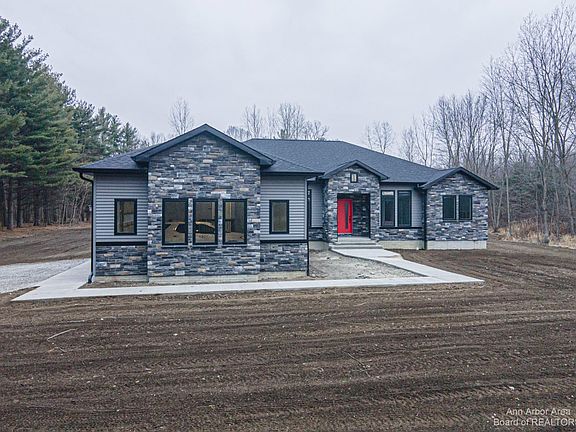 Gorgeous Contemporary Custom Ranch Home built 2022 on private wooded 10 acres w/gated entrance next to Thorne Hills Golf Course! High End Finishes-Quartz Countertops, Gourmet Kitchen w/Custom Cabinetry, sizable Island, Beverage/Wine Frig in Coffee Bar. Energy Star Windows & 2x6 construction w/Cellulose insulation contribute to keeping you warm during frigid Michigan winters, while keeping monthly costs lower. Summer storms? No problem! Has a 22kw whole home generator. Every window provides a Picturesque View of Nature w/its ever-changing Canvas! Enough room for both Kids & Guests w/ 5 Beds/3.1 Baths, & your own Separate Office w/Custom units. Revel in your Luxurious Spa-like Main Bthrm w/Spacious Walk-in Shower, Beautiful Soaker Tub & Enormous Walk-in Closet, again w/built-ins to keep you organized. How about a 4800 SF Grand Outbuilding, fully insulated w/ concrete floors, water, and 1000 Amp electric, ideal to run your own Profitable Business, think of your Short commute! 3,100 SF Basement,9'ceilings, plumbed for bath, and awaiting your designer touches to double your living space. Seller is licensed Realtor in Michigan., Primary Bath