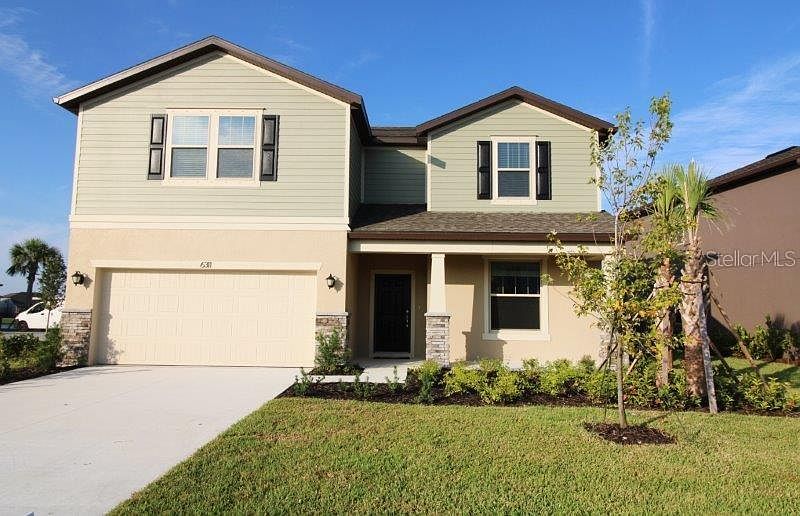 Under Construction. This beautiful Citrus Grove home offers a spacious 2-story, open floor plan with owner's suite on the first floor and three bedrooms and spacious game room area on the second floor. Upgraded kitchen and bathrooms and luxury vinyl wood-look flooring throughout main living area and tile in the bathrooms, elegant interior doors, wrought iron spindles, maple cabinets, and granite countertops throughout will impress. Truly enjoy meal time in this spacious kitchen featuring large island, stainless steel appliances, and walk-in pantry. This home also includes a large laundry room on the first floor. Step out back to relax or entertain friends and family on the extended covered lanai with a lovely pond water view perfect for quiet Florida evenings and summer cookouts. Natural light fills the master suite at the back of the home which includes a spacious walk in shower, large vanity with double sinks and walk-in closet. Upstairs offers a spacious secondary living space surrounded by three large bedrooms with walk-in closets and a large bathroom. Welcome home to Citrus Grove at Trevesta! Similar model pictures shown are for illustration purposes only. Elevations, colors and options may vary.*