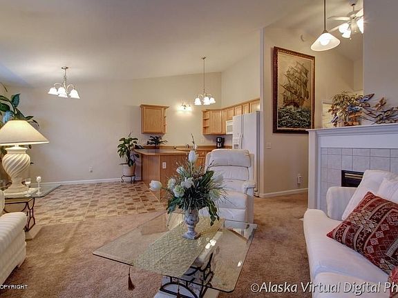 Immaculate south facing condo in a cul-de-sac with a private fenced yard+deck. Open concept living room w/ high ceilings, tiled fireplace + lots of windows. Professionally painted, new flooring + light fixrures. Enjoy Mt. views from the living room. A great place to call home.