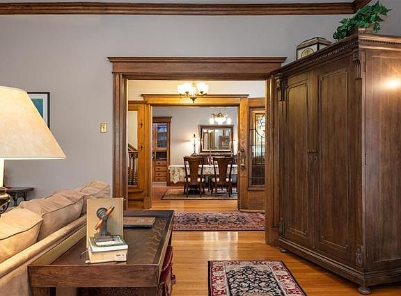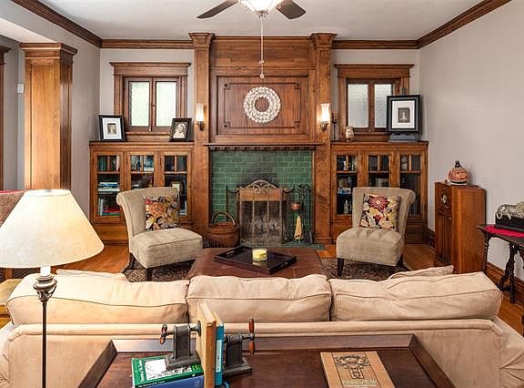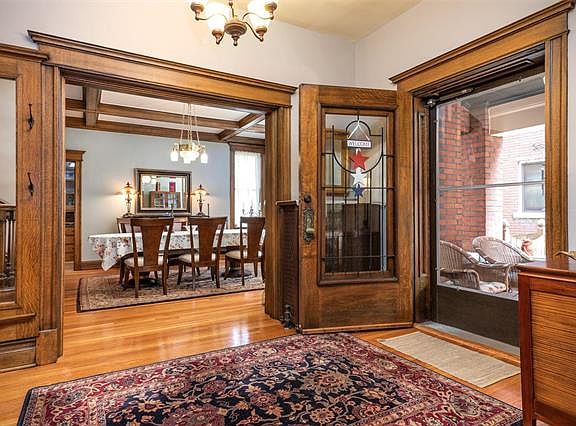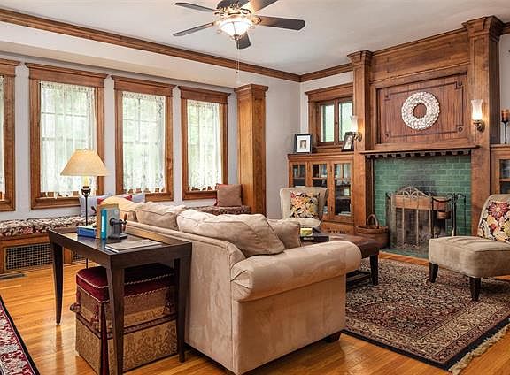 Words canâEUR(tm)t describe this stunning home. Sellers have made endless, tasteful improvements preserving this home. Covered, side entry porch entry! You are greeted with hardwood flrs that lead to peaceful Living Rm with fireplace and grand staircase. Dining Rm with built in marble top buffet that awaits anything you prepare in your gourmet Eatin Kitchen! Relax and enjoy a cozy Sitting Rm off of the Breakfast Rm, overlooking your beautifully landscaped back yard with stamped patio. Second fl offers a large Master Bedrm with exquisite original architecture! Two additional bedrms and an updated bathroom with dual sinks and free standing tub! Third fl offers even more space with yet another bedrm and bathrm! ItâEUR(tm)s not over yet!! A truly one of a kind lower level offers additional living space with beautiful knotty pine and fireplace, a work room and tons of additional storage. DonâEUR(tm)t forget the matching two car garage for all of parking and storage needs.