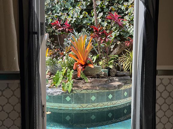 This furnished studio unit is in a resort-style, award-winning property with a pool, beautiful tropical plant garden, and fountains right outside the door. Custom-built Moroccan style architecture and design. Shared front-loading washer and dryer use included. This unit comes with a separate kitchenette that includes a half-size refrigerator/freezer and a microwave. New professional smart desk with motorized height adjustment and wireless charging capability just recently installed. Also comes with wall-mounted Smart TV and Casper mattress. Rent includes electricity, internet, wifi, and in-room air-conditioning is INCLUDED! (operating rules apply) No on-site parking, but rental comes with very close and readily available street parking. Seeking a single occupancy tenant who is quiet, clean and respectful. No smoking, no animals, no exceptions. Thank you. Rent of $1350/mo. includes electricity, wifi, water, trash, and air-conditioning. Available for move-in 4/15/2025. Six month lease (renewal encouraged if it's a good fit). No smoking, no animals, no exceptions.