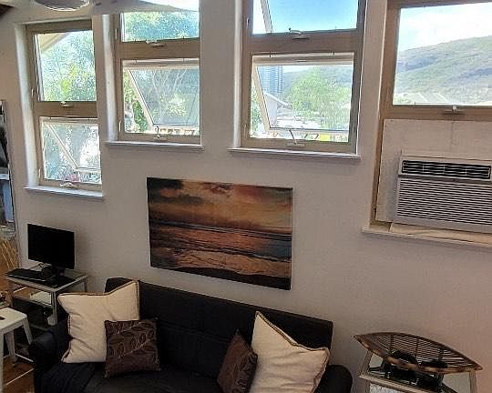 This is a one-of-a-kind, executive 2nd floor loft in an award-winning, custom-built and designed canal-front property in Hawaii Kai. Surrounded by a pool and lush, tropical landscaping, this beautiful unit comes with furnishings, private parking spot, electricity credit of $150/mo, wifi, and trash service all included! A/C is available at a subsidized rate. Full-size 12x12 bedroom space, galley kitchen with brand new "smart" stove and new refrigerator, 15' cathedral ceilings with two ceiling fans, and bamboo wood floors. Double height living and dining room with rustic travertine tile, entertainment wall and big screen TV (included), 8' ceiling sleeping loft, huge bonus 12x12x4.5 storage space beneath loft, glass and travertine bathroom with two sinks and full-size front loading washer and dryer. Comes with both pool and marina dock access. No smoking and no pets. No exceptions. 6-month lease. Rent is $2,550/mo. Security deposit equal to one month's rent also due at signing. All utilities are included. A/C available at a subsidized rate. 6-month lease (renewal encouraged). No pets, no smoking, no exceptions.