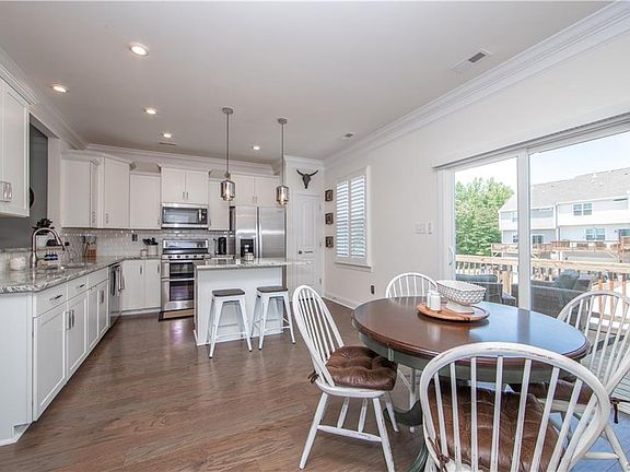 BACK ON MARKET NO FAULT OF SELLER: BETTER THAN NEW luxury townhome built in 2019 packed full of post-closing upgrades! This MAINTENANCE FREE, farmhouse style townhome is located in the desirable FoxCreek's Wynwood Section which features community walking paths, a dog park, playground, splash park, and pool and clubhouse access. Homeowner updated the first floor with scratch resistant, water-proof, luxury vinyl plank that runs through the powder room. The second floor kitchen and great room have beautiful, wide-planked hardwood floors that are complimented by the custom wall treatments throughout. The kitchen is equipped with granite counter tops, soft-close cabinets, gas range, double oven, stainless steel appliances, and sliding doors that have access directly to the oversized back-porch. The sliding doors to the back porch also feature remote controlled solar shades for extra privacy. The owner's bedroom on the third floor has a walk-in closet, tiled shower with a bench, and more custom trim work. The third floor is also where you will find the washer and dryer which convey with the property! Schedule your showing today!