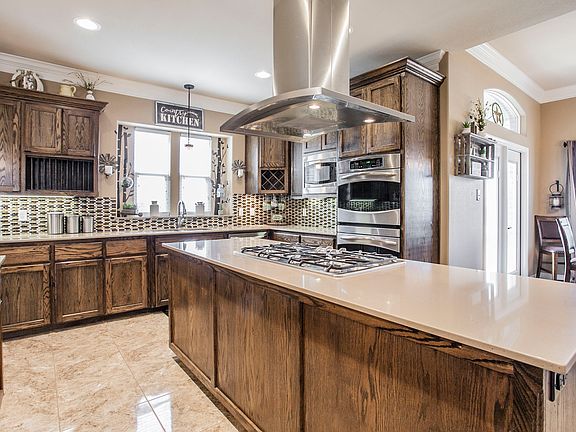 • Kitchen Features: Breakfast Bar, Cook Top, Custom Cabinets, Built-In Oven, Disposal, Gas, Double Ovens, Vent Hood, Walk_in Pantry, Center Island, Open to Family Room, Granite Counter Top