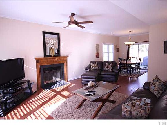 Perepare to fall in love with this charming ranch home!Open layout features cozy family rm w/fp,sep dining rm overlooks patio & huge fenced bkyard.Chef's kitchen has tile floors,tile backsplash,smooth top range& pantry.Spacious master suite w/WIC,dual vanity,tile shower/tub.Community amenities include pool&tennis.One car garage plus parking pad.Convenient to 540,Hwy 70,Brier Creek.