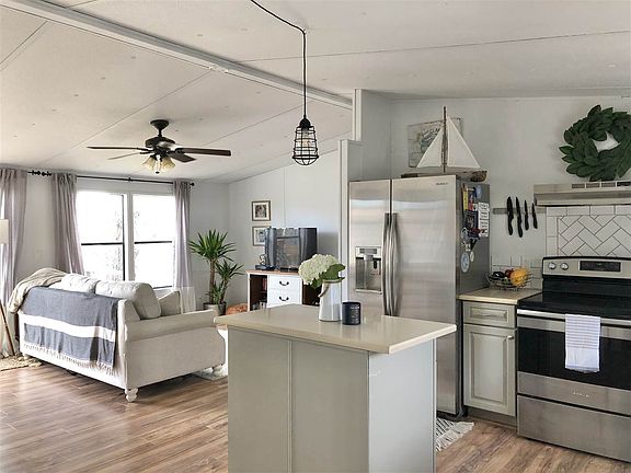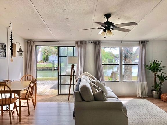 Hear the waves crash and feel the breeze coming straight down the intersecting canals from this oak-canopied back yard. Situated on one of the most beautiful lots in Treasure Beach, this quaint home is only one canal away from the Intracoastal waterway and just a short bike ride to the beach. Beautiful expansive water views from living room, kitchen, and two of three bedrooms. Quatrz kitchen countertops. Metal roof installed 2018 and canal was dredged early 2020. Master en-suite has new bathtub. Entire home has laminate wood flooring under three years old. Quartz counter tops. Neighborhood has deeded beach access as part of the voluntary POA. Automatic garage door opener. Concrete bulkhead in excellent condition. Lots of room to add onto home.