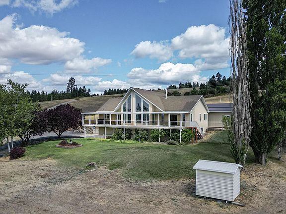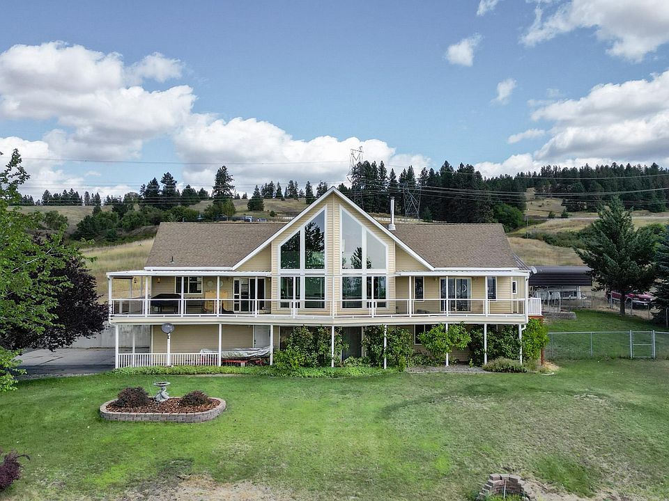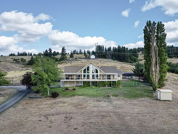 Well cared for & meticulously maintained one of a kind home w/ all the extra features & amenities. This home features almost 4000 sq ft of living space situated on 9.56 acres overlooking Spokane Valley & Liberty Lake. Main floor features the main bedroom w/ slider door to wrap around deck, bath w/ barn door, double sinks, jetted tub, walk in tiled shower, & a walk-in closet. At the heart of the home you will find 20 foot vaulted ceilings w/ floor to ceiling windows & custom built-ins, beautiful brick fireplace & mantle, engineered hardwood floors & newer carpet. Kitchen features Corian countertops, tile backsplash, stainless appliances w/ double convection oven, soft close cabinets & drawers, & storage galore! On the lower level is 3 beds, 1 bath & a family room w/ large picture windows. The 300 sq ft loft is a perfect for a playroom, office, or man/woman cave. Beyond the walls enjoy the 360 degree views, city lights, wild life, 30x40 insulated shop, fruit trees, asphalt driveway, and sports court.