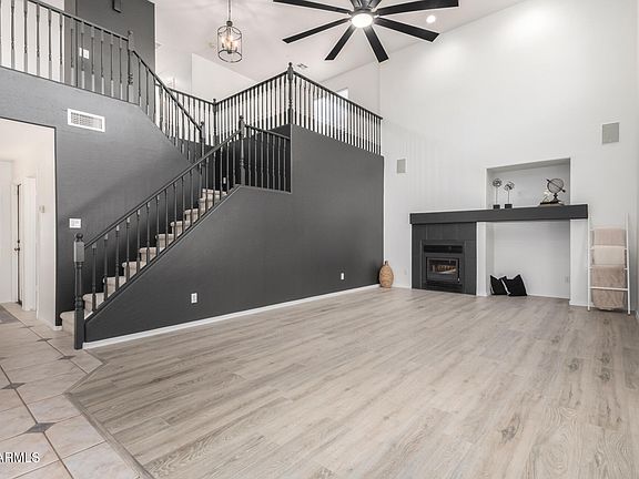 Welcome home to this gorgeous move-in ready home with recent updates and breathtaking mountain views! This spacious 4 bedroom, 2.5 baths includes a convenient downstairs bedroom ideal for guests or multigenerational living. The master suite is a true retreat featuring an attached office or den with its own closet. A private balcony for enjoying the mountain views and ample space to unwind. An upstairs loft and open vaulted ceilings add to the home's airy feel, while north/south exposures offer scenic views from nearly every room. Enter your dream kitchen beautifully designed with white cabinets and quartz countertops. The island offers plenty of space for meal prep or family gatherings. There's a separate dining room as well as a breakfast nook to enjoy your morning coffee. Tile and LVP flooring throughout the downstairs area is ideal for kids and pets for easy cleaning. The extended garage provides plenty of storage space with custom cabinets perfect for your tools while offering space for parking your vehicles or recreational toys. Private cul-de-sac for you tranquility. Hiking trails and Life Time Fitness nearby for your active lifestyle. Don't miss this opportunity to make this your new home where comfort and style come together in a prime location!