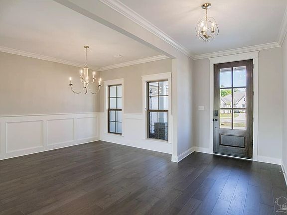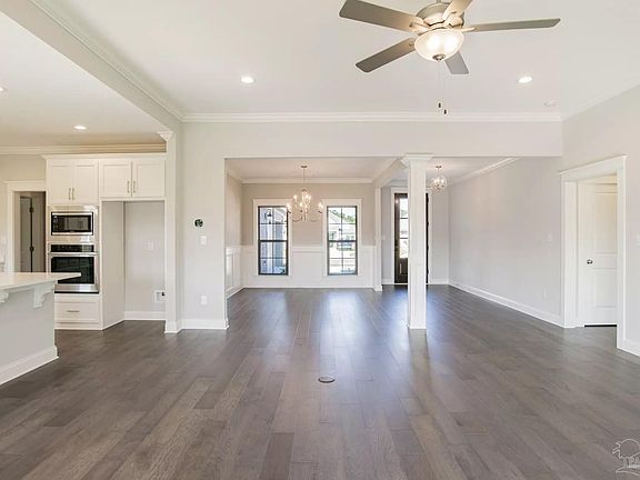 Introducing the Walnut floorplan in Whitley Estates! The Walnut is a stunning 2-story with 4 bedrooms and 3 baths and a 3-car garage! Nestled on a large 1/2-acre lot, this home is located in a quiet, highly desirable area of Pace. Loaded with upgrades and high-end design details, the home features an 8ft. front door, custom-made window and door casings, crown molding, smooth texture walls, 10 ft. ceilings in the living and flex room, granite countertops throughout, custom-built cabinetry, solid wood shelving, built in mud bench, and continuous EVP flooring in main living areas and master bedroom. The master suite boasts many luxurious elements such as tall tray ceilings with LED recessed lighting, walk-in tiled shower, double vanity, and a large walk-in closet. In the kitchen, you will also find a large pantry with solid wood shelving, soft-close cabinets & drawers, tile backsplash, an undermount sink, & a large island. The unique design details of this home spill from the inside, out. On the exterior, you will find LED recessed lighting in the front eaves, custom built shutters, Low-E windows, hurricane protection and beautifully stained V-groove Pine ceilings under both front and back porches!