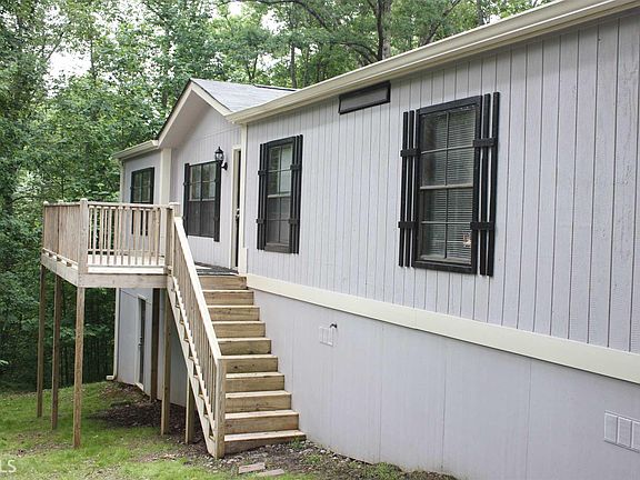 Fantastic location close to I985, shopping, grocery, restaurants, new hospital, houses of worship etc. Great school system - Flowery Branch HS. Amazing lot centered in the middle of Hardwoods and green with a trickling stream just below - tranquility at it's best! Completely renovated mobile home including new roof, carpet, interior/exterior paint, 6-panel doors, countertops and blinds. Washer, dryer and refrigerator included. NO HOA~