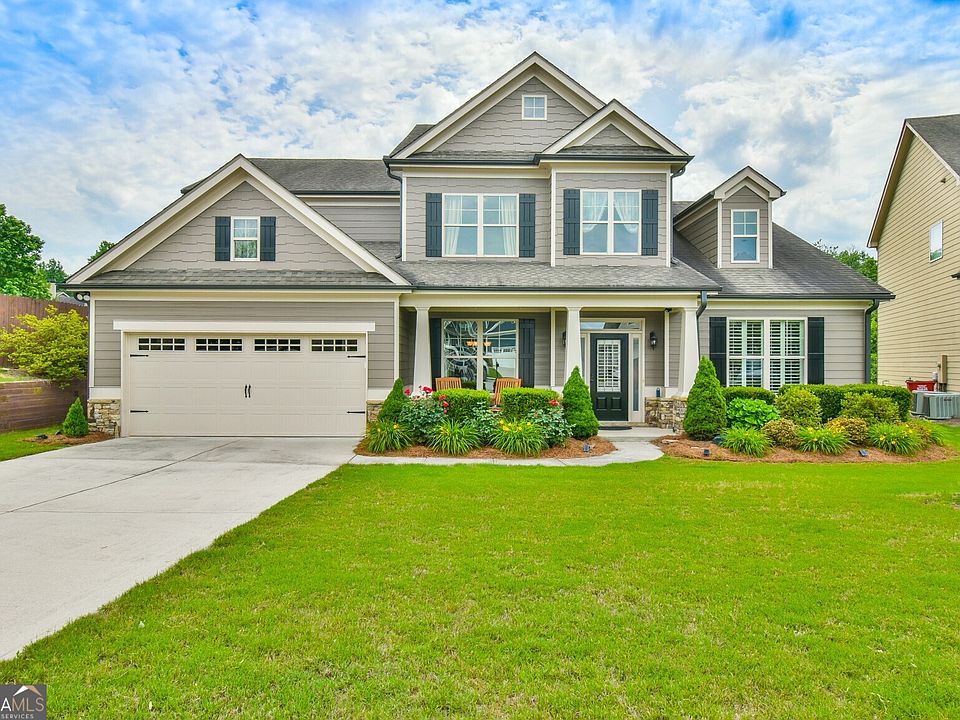 Welcome to your dream home nestled on a large cul-de-sac lot in the highly sought-after Riverstone Park community. This charming master on main craftsman style, sunlit beauty features a spacious open floor plan that seamlessly blends living, dining, and kitchen areas- the perfect setting for entertaining family and friends. Enter the foyer flanked by the formal dining room which leads to the huge 2-story family room featuring a wall of windows, the welcoming double-sided fireplace that invites you into the keeping room, and the huge gourmet Kitchen highlighted by a large center island/ breakfast bar, breakfast area, and walk-in pantry. The large master suite on the main offers a private retreat with spa-like amenities & a large walk-in closet. Upstairs features 3 bedrooms, 2 that share a Jack and Jill bath, and 1 private suite with a full bath and a large walk-in closet. Many highlights include hardwoods, granite countertops, custom trim, and plantation shutters. You will enjoy outdoor relaxation on the covered patio, which overlooks a huge privately fenced backyard that would be the perfect setting for the family pool. The community amenities include a pool with a mushroom, tennis courts, and a playground. Fabulous location being just minutes from the state-of-the-art Northeast Georgia Medical Center, Chateau Elan Winery & Resort, beautiful Lake Lanier, minutes to I-85 and 985, and close to shopping and restaurants.
