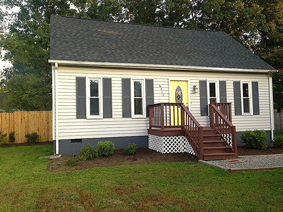 Renovated cape in a quiet and established neighborhood in Chesterfield County! This lovely home features low-maintenance vinyl siding, a BRAND NEW dimensional shingle roof, a spacious deck and a new privacy fence around the expansive backyard. Inside, the large eat-in kitchen features stainless appliances and newer cabinets and countertops. The kitchen, living and dining room have been finished with Vintage Hickory hand-scraped laminate. Both full baths have porcelain stone tile. Beauty and style at a bargain!