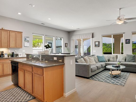 Solera at Kern Canyon, active adult gated community. This home features 2 bedrooms, plus a spacious office, 2 bathrooms, and a 2 car garage. A spacious open floor plan with an office, lovely kitchen with granite countertops, new wood look tile flooring, kitchen nook, recessed lighting, a great room with a fireplace and indoor laundry room. New owner will have access to all of the Solera amenities that offer full access to community club house, library, gym, pool and more.