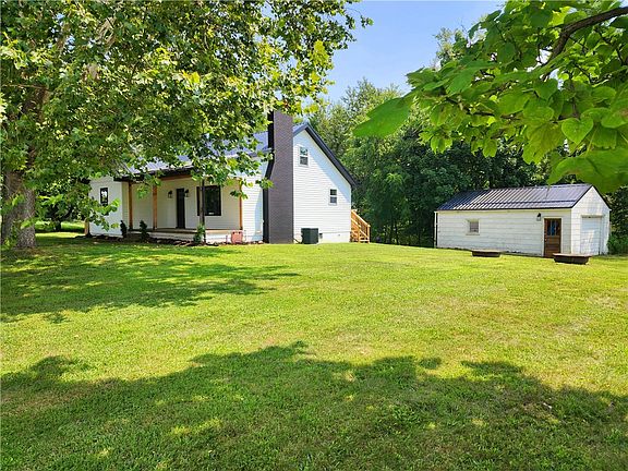 This adorable Modern Farm House sits on 2.95 Acres and has 3 Bedrooms and 1 Bath. It has been completely updated inside and out; you must move in and enjoy it! This home has two of the three bedrooms on the first floor and a large Bedroom on the second floor, with a large walk-in closet and wall-to-wall carpeting. The new kitchen has granite countertops, a lovely custom backsplash, and new stainless steel appliances, which create an open concept for the dining room. The first floor has high-end waterproof wide-plank vinyl flooring throughout. A stone fireplace greets you in the living room, adding some rustic farm style. The bathroom has a slate tile floor with dark navy cabinetry and a ceramic shower enclosure. This home also has a new roof, Furnace, AC & water heater. This home includes three parcels.