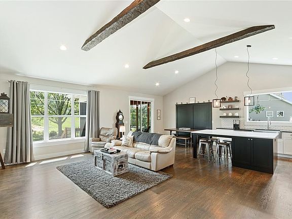Looking for a home that satisfies both style and function? Don't miss this stunning custom built ranch with a popular split bedroom design It is perfect for entertaining and everyday living with an open floor plan and over 3000 sq ft. You will appreciate the impeccable attention to detail in the gourmet kitchen featuring custom cabinetry, large island, granite countertops and walk-in pantry complete with a modern barn door. The great room features a vaulted ceiling with a full stone gas fireplace and custom built-ins. Don't miss the custom banquette for dining The luxurious master suite includes a private bath with soaking tub, a spacious walk-in closet with a convenient pass through to the laundry room with convenient drop zone. There is more room to play in the finished lower level with a game day sized rec room including a wet bar with eye-catching wood feature walls. Top it off with a 3-seasons porch with Eze-Breeze windows AND a 4-stall large enough to fit all of your toys. Call today for a private showing
