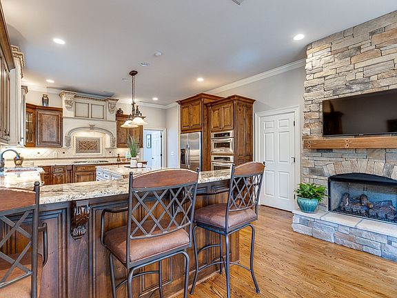 Private and peaceful backyardLarge walk-in pantryStacked stone fireplaceAdjacent officeWhiskey barBasement theaterBuilt-in entertainment center