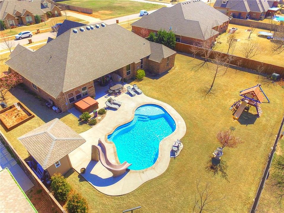 This certified green home sitting on 1/2 acre w/ swimming pool and hot tub is absolutely stunning! Open plan featuring 4 true beds-3 baths-study-formal dining-game room w/ kitchenette & media room w/ built in projection screen. You will fall in love with the amount of custom woodwork and details from the moment you walk in. The large kitchen features center island, built in gas range, pantry and huge semi circle counter w/ beautiful granite. The formal dining room is equipped w/ built in and granite tops. The kitchen/living area opens to your gameroom and media wing. The 4th bedroom/mother in law has access to full bath along with a built in murphy bed. As expected, the master/spa will not disappoint. Raised, inlaid ceiling w/ crown molding, detailed woodwork & countertops ,gorgeous bathtub and lots of closet space. Out back features quartz lined swimming pool w/ heater, hot tub, and pool bathroom and storage. Storm shelter. Too many details to list, contact Russell for more.