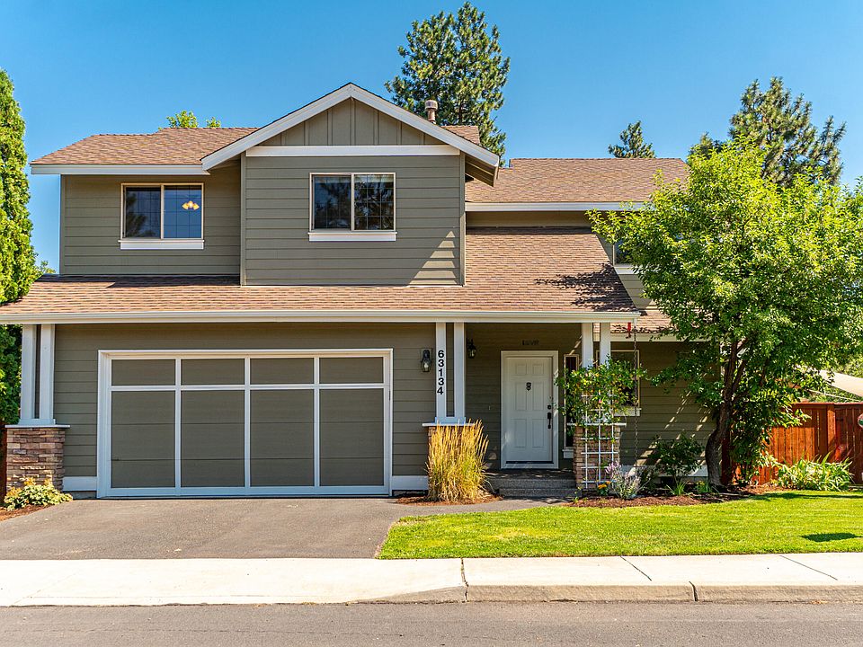 Outstanding location! This light-filled 4 bedroom, 2A½ bathroom home plus Office is located in NW Bend's established Riverstone neighborhood. You could not ask for more with close proximity to the Deschutes River Trail, North Star Elementary, Sawyer Park, Riley Ranch Nature Reserve, and the new location of Desert Sky Montessori Charter School. The home is situated on a spacious corner lot in a quiet cul-de-sac. The open concept main level has an abundance of light, well laid-out kitchen with large pantry, dining area, inviting great room, office, and guest bathroom. Upstairs you'll find the primary bedroom with private deck, along with 3 additional bedrooms, bathroom, and laundry room. Recent updates include new carpet, interior paint, vinyl flooring, and exterior paint in 2019. The backyard features a bountiful garden, nice sized yard for pets/children along with a handy storage shed. Welcome home!