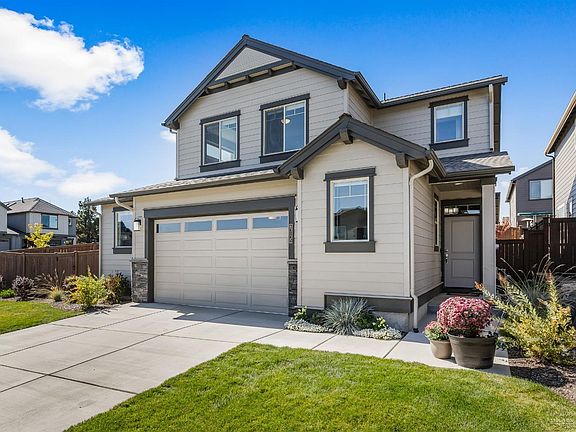 Like New, quality built, Pahlisch Home on a corner lot in McCall Landing in NE Bend! This 1,810 sqft, 3 bedroom 2.5 bath home features Laminate Flooring throughout, quartz counters in kitchen & bathrooms, huge kitchen island, pantry, great room, stainless steel appliances, covered back patio great for entertaining, backyard privacy, office, oversized garage with shelving and work bench, honeycomb blackout blinds, views of Broken Top & South Sister from upstairs. HOA maintains front yard landscaping, blocks from Boyd Park, close to Pine Nursery Park, shopping, breweries & restaurants.