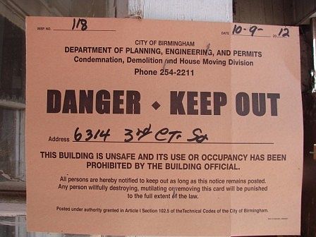 ATTENTION INVESTORS. Over 1800 square feet per tax records. Flat partially fenced back yard. Right of redemption may apply, buyer should verify any info important to buyer, including taxes, condition, fees, schools, zoning, etc. The city of Birmingham has posted a condemnation notice on this property and can only be viewed from outside.