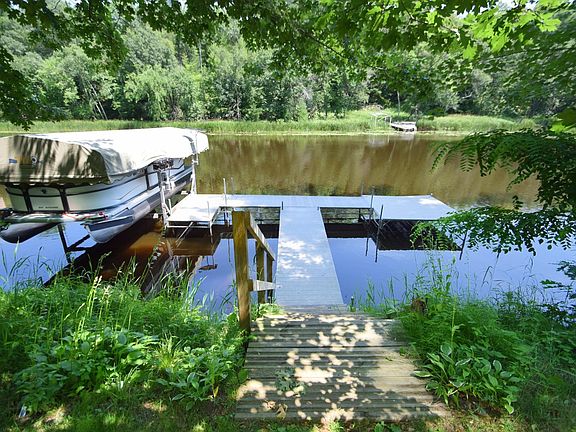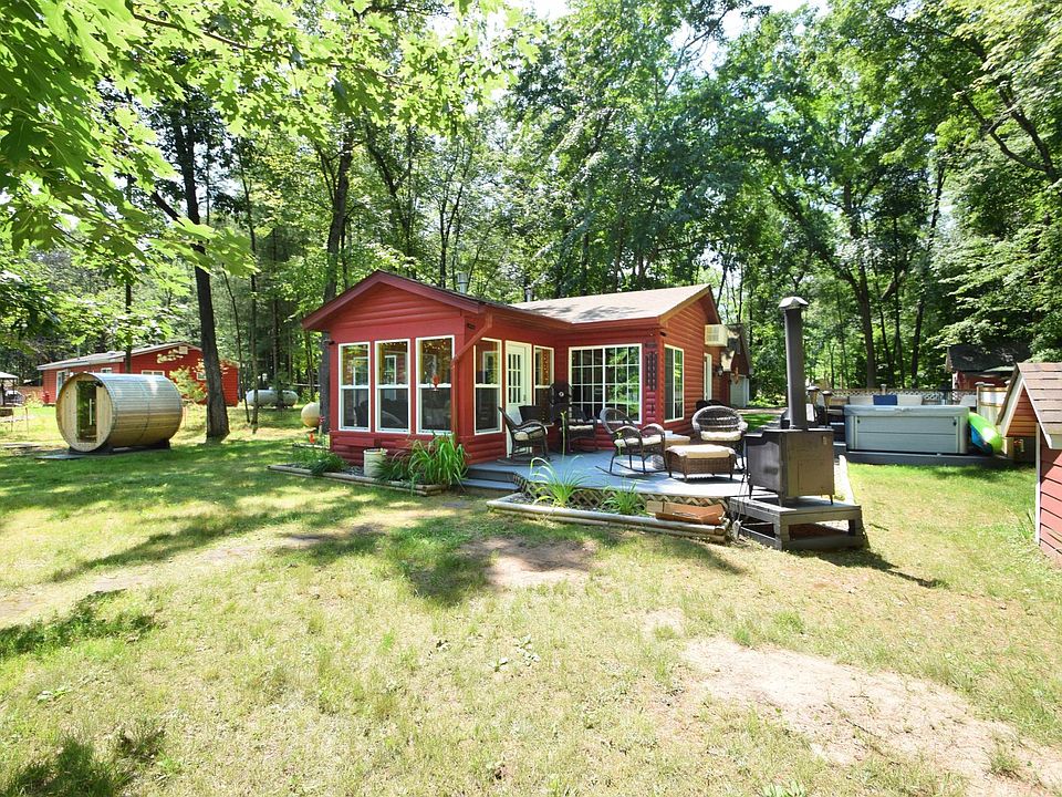 Charming 4 season log sided one level cabin tucked in the woods sold furnished/turn-key on the Clam River! Too cute for words w/all remodeled interior, knotty alder cabinets, updated laminate flooring, barnwood walls, LP gas frplc, cedar vaulted ceilings, remodeled bath, 1+ BR w/new flooring, laundry & water softener added. Quaint porch provides flex space for addt'l. sleeping & new composite deck sits off the river's edge w/stunning views. Retreat to the new hot tub & barrel sauna after a long day. New roll-in dock, newer roof, water heater, windows, updated electrical, new drilled well & conv. septic, fiber optic. Oversized insulated/heated 2 car gar. w/LP smart siding, w/fully finished loft w/rec space has pine interior & LVP flooring. New landscaping, outhouse & shed. Boat to Clam Lake minutes away w/2 bar/restaurants or relax & swim/fish/paddle right off your dock. Nicely wooded w/100' of sand frontage and 0.6 acres, on a quiet dead-end road. Endless fun awaits your family here!
