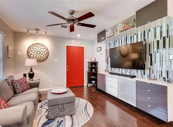 Absolutely adorable East Austin Bungalow completely renovated from the studs. This home will capture your attention with recent updates including: 20 year shingle roof, gutters, HVAC, updated electrical wiring/amp, insulation, garage door, exterior/interior paint, windows and wood plank ceramic tile flooring throughout for easy maintenance. The Living room offers sophisticated living with modern built-in entertainment center for extra storage and media equipment. The kitchen has a touch of style with white cabinetry, subway tile backsplash, tile countertops and stainless steel appliances. Relax on the large front porch or patio in the large backyard. Easy access to I-35/290/183 for travel. Located close to the Mueller District for shopping, entertainment, dining and minutes to Downtown.